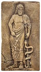 Rappelons que dans l’Antiquité les malades accouraient de toute la Grèce pour se faire soigner par un dieu guérisseur, Asclépios, en son Temple d’Épidaure, à l’est du Péloponnèse. Après un bain et l’offrande d’un sacrifice, le malade passait la nuit sous un portique du temple, afin d’entendre en rêve le message du dieu guérisseur et le rapporter aux médecins. Le lieu grouillait de serpents, considérés comme des porteurs de la vie. C’est autour du bâton de cet Asklépios (Esculape) que s’enroule le serpent du Caducée, symbole du pharmacien.