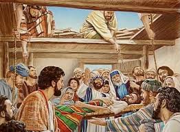 À Capharnaüm, toute une délégation fait le siège de Jésus et de la maison où la foule, agglutinée, l’écoute, l’encercle, l’enferme ! Un paralytique dont on ne sait rien d’autre que son moteur est en panne, a attiré autour de lui un petit groupe qui s’active. Quatre porteurs, des gros bras, d’autres bonnes volontés, sûrement aussi des femmes vont apporter leur soin, leur sollicitude, leur charité, tous des gens qui encouragent cet homme, lui tiennent la main, imaginent ingénieusement de le passer par le toit, dirigent la manœuvre. La paralysie de leur voisin a élargi leur cœur et décuplé leur énergie.
